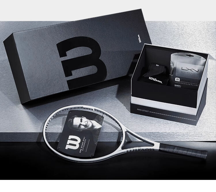 礼盒中除了球拍本身,还附赠了威尔胜pro staff的头带和口罩,