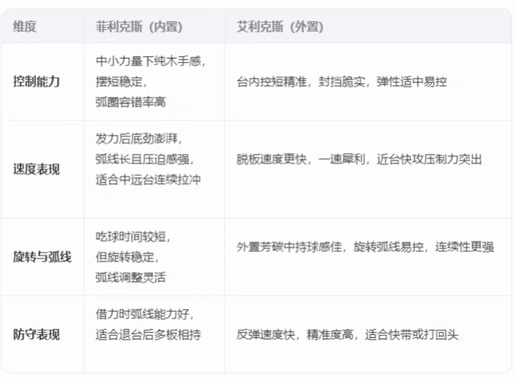 菲利克斯:更适合注重控制、旋转及中远台底劲的选手,内置结构对业余球友友好!