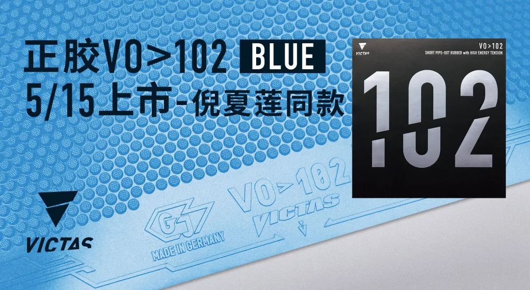 102正胶不仅是国家队、倪夏莲老师使用款,也是VICTAS品牌最人气款颗粒胶。全新蓝色102正胶的上市,为乒乓市场注入新的活力,让更多的乒乓爱好者感受彩色颗粒带来的乐趣与魅力。