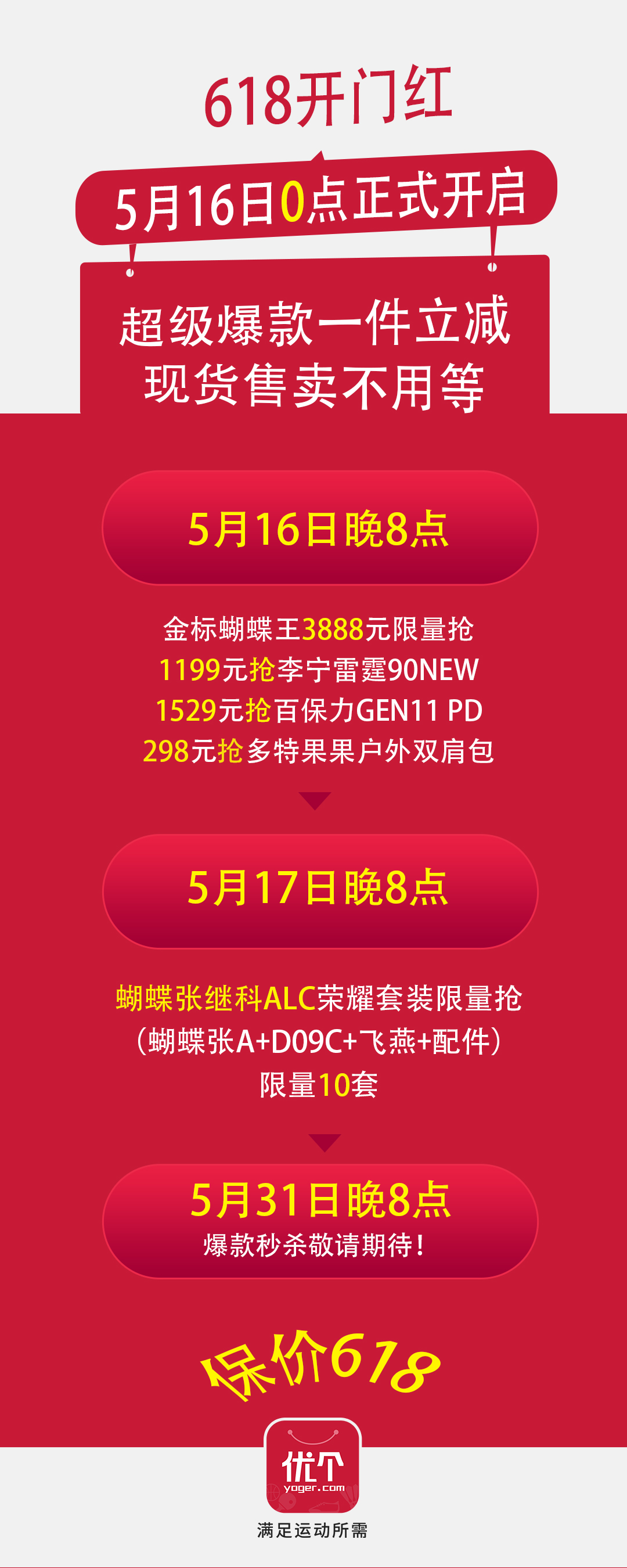 优个运动618开门红金标蝴蝶王3888元限量抢