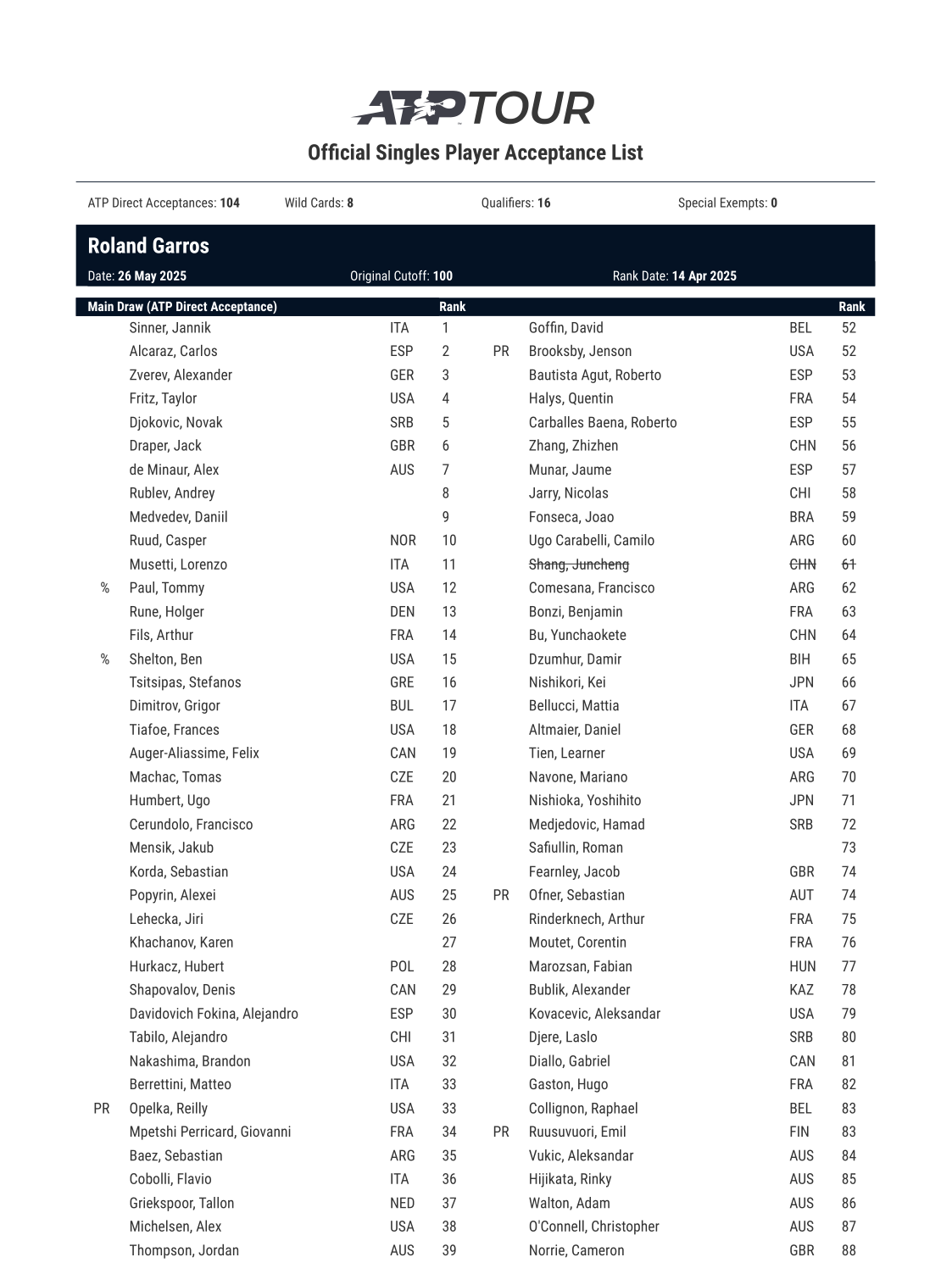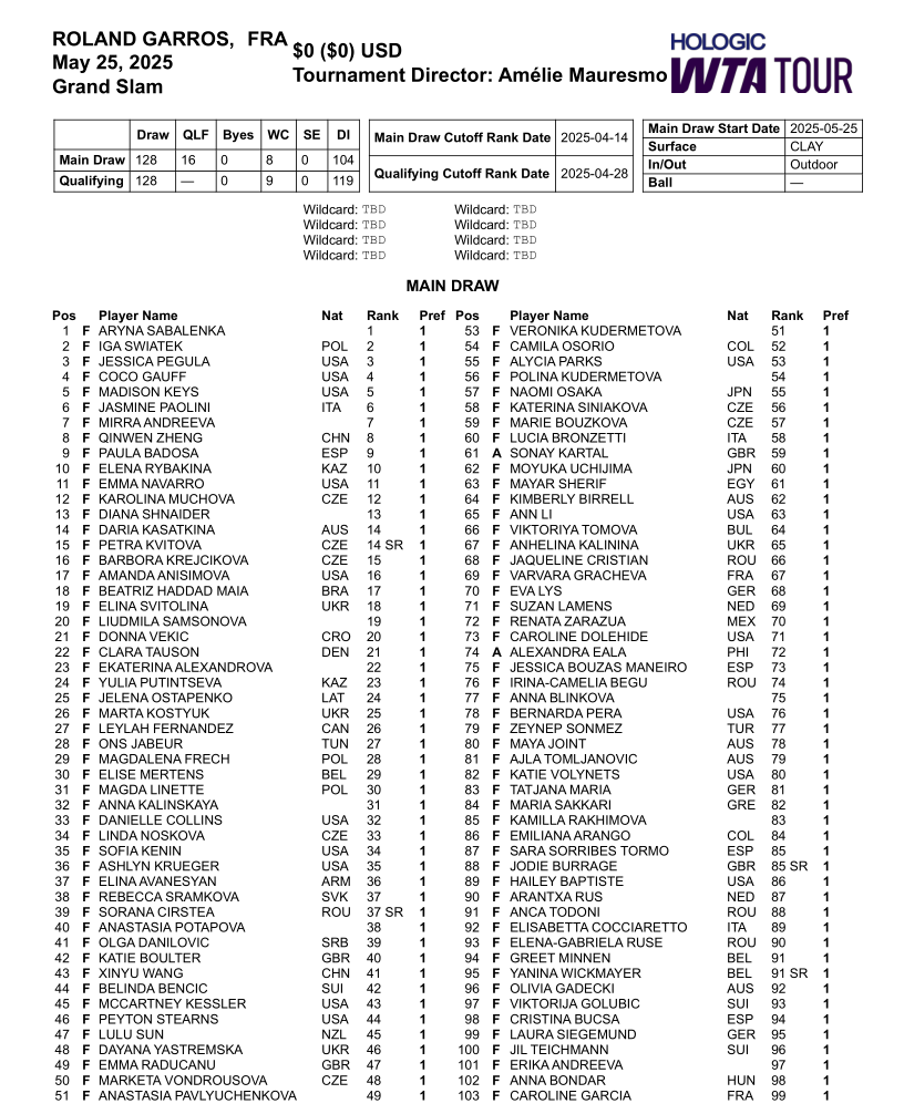 郑钦文结束罗马站后调整备战,以红土实力冲击法网,此前在罗马站击败萨巴伦卡并鏖战高芙积累经验。张之臻因伤退赛复出时间待定;王曦雨、吴易昺等参与资格赛。
