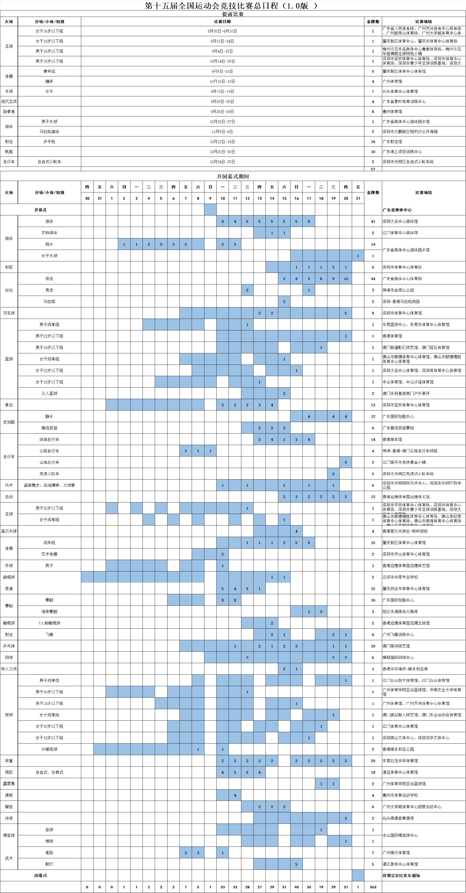 十五运会网球测试赛定于8月10日举行,正赛将于11月9日—20日(具体赛程未完全公布)开赛。