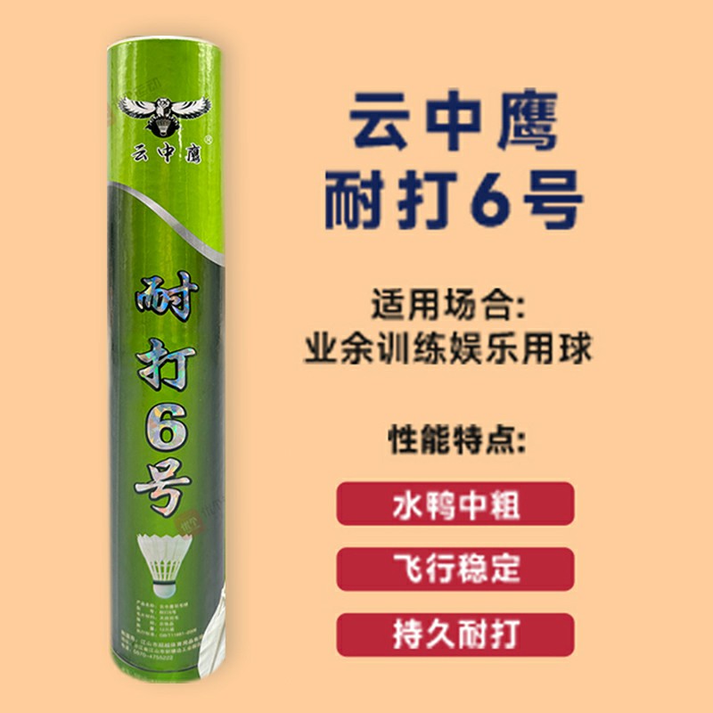 云中鹰 羽毛球 耐打6号 高弹力室内外用球 水鸭中粗 比赛训练用球 12只/筒飞行稳定 持久耐打
