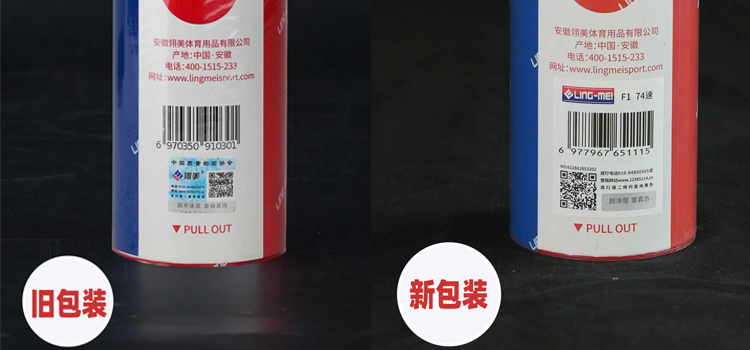 翎美(F系列、G3)鹅毛球产品包装焕新升级! 本次升级仅涉及产品外包装,产品本身及生产工艺均保持不变!从单一的防伪码标贴升级为三码合一标贴(带型号、球速的69码+溯源码+防伪码)。标贴均贴在透明塑封膜的外面。