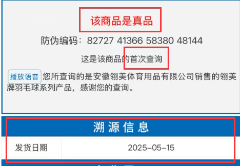 新包装使用的标贴不仅可以查询真伪,还可查询该筒羽毛球的出厂日期。