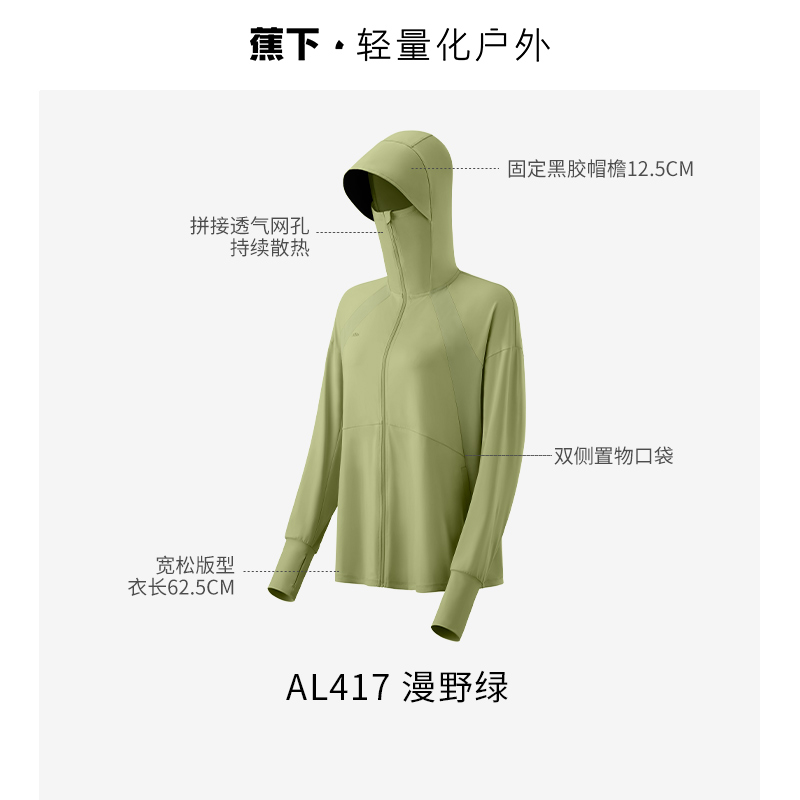 蕉下宽松防晒衣女夏upf100+凉感冰丝透气速干防紫外线户外防晒服 漫野绿 AL417