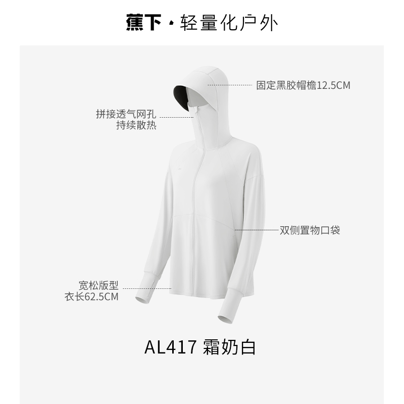 蕉下宽松防晒衣女夏upf100+凉感冰丝透气速干防紫外线户外防晒服 霜奶白 AL417