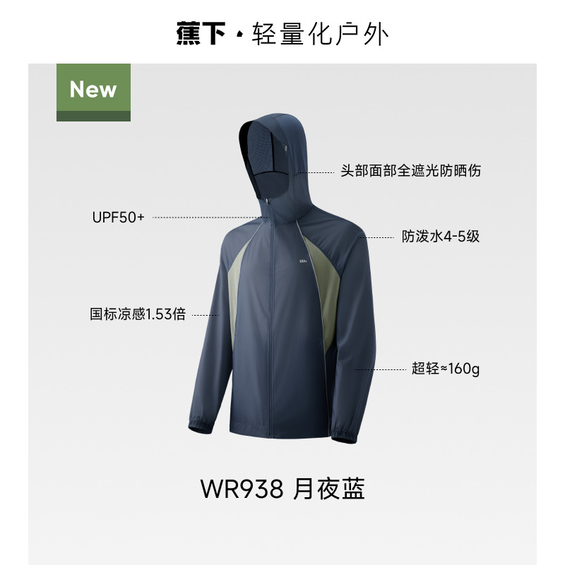 蕉下轻薄防水防晒衣男款户外跑步骑行皮肤衣透气速干防晒服 月夜蓝 WR938