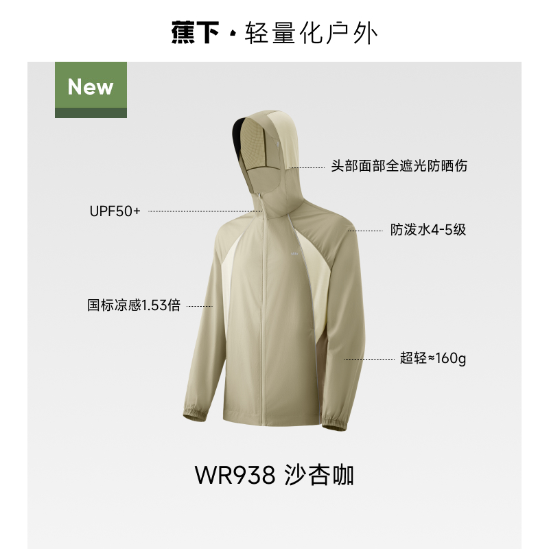 蕉下轻薄防水防晒衣男款户外跑步骑行皮肤衣透气速干防晒服 沙叶咖 WR938