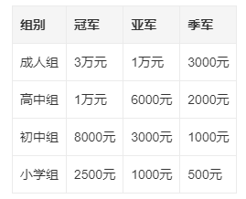 附加奖励:各组4-6名颁发奖品,所有参赛者获证书