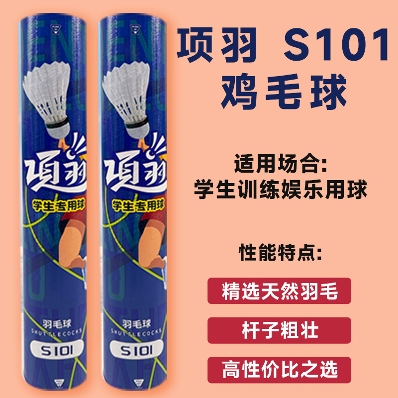 项羽羽毛球 S101 鸡毛球 杆子粗壮 复合软木球头 学生训练专用球 12只/筒;精选天然羽毛 飞行稳定 耐打耐用