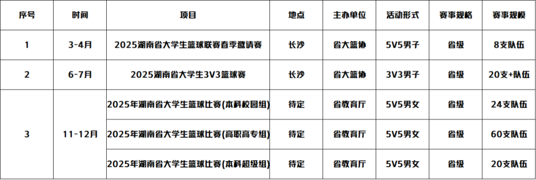湖南省大学生篮球协会2025年赛事均由优个运动、斯伯丁、迈克达威携手赞助。