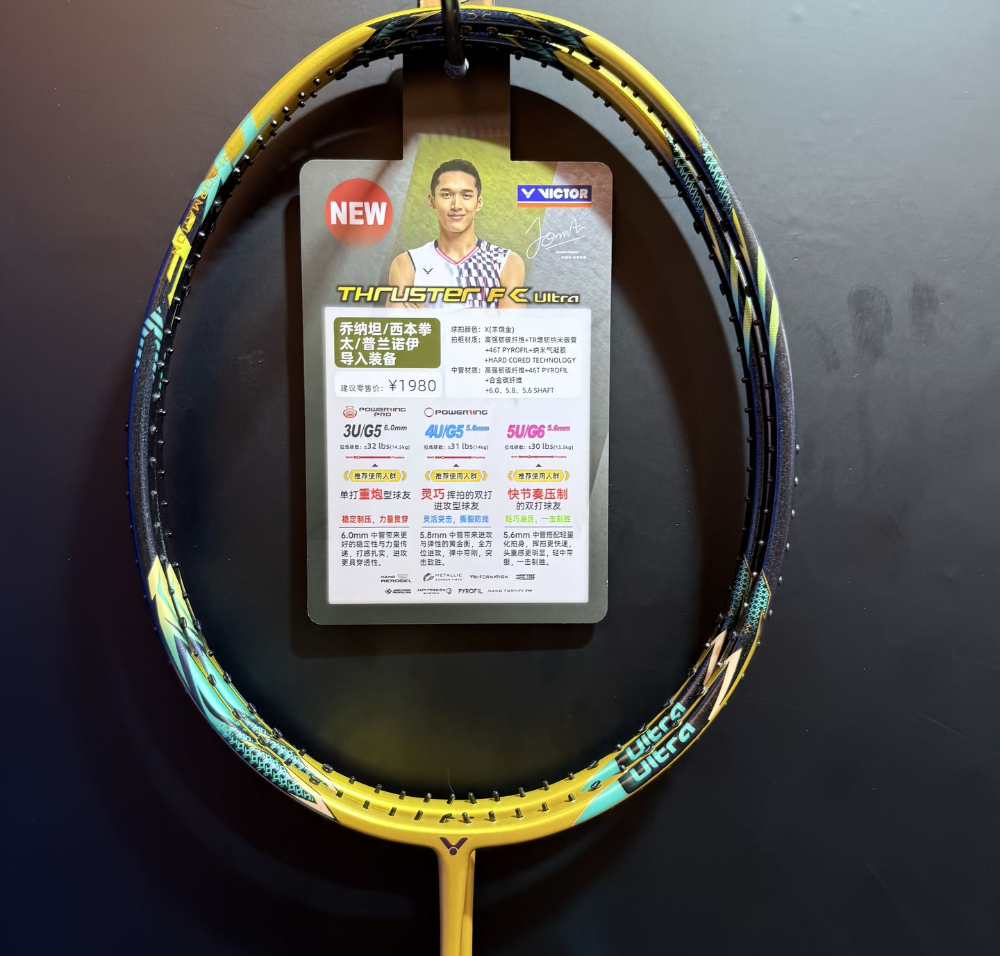 5U 规格:取消能量环配置,搭载 VICTOR 引以为傲的 5.6mm 极致超细中杆,借助核心碳纤维与纳米气凝胶的轻量化组合,将整支球拍重量严格控制在 79g 以内,实现 “轻如鸿毛、快若闪电” 的双打绝佳体验,是网前封网与连贯抽挡的不二之选 。