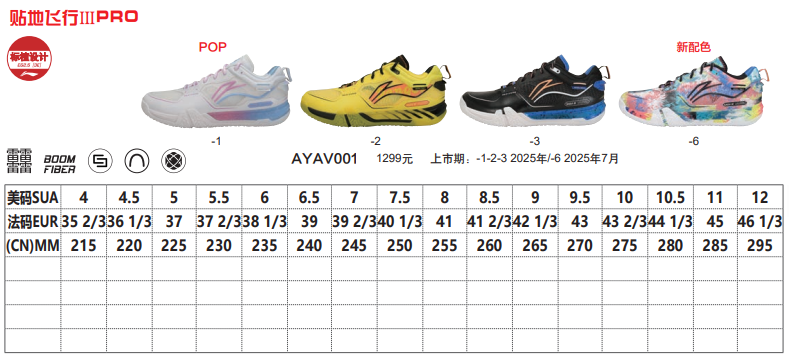 李宁羽毛球鞋 贴地飞行ⅢPRO 规格参数