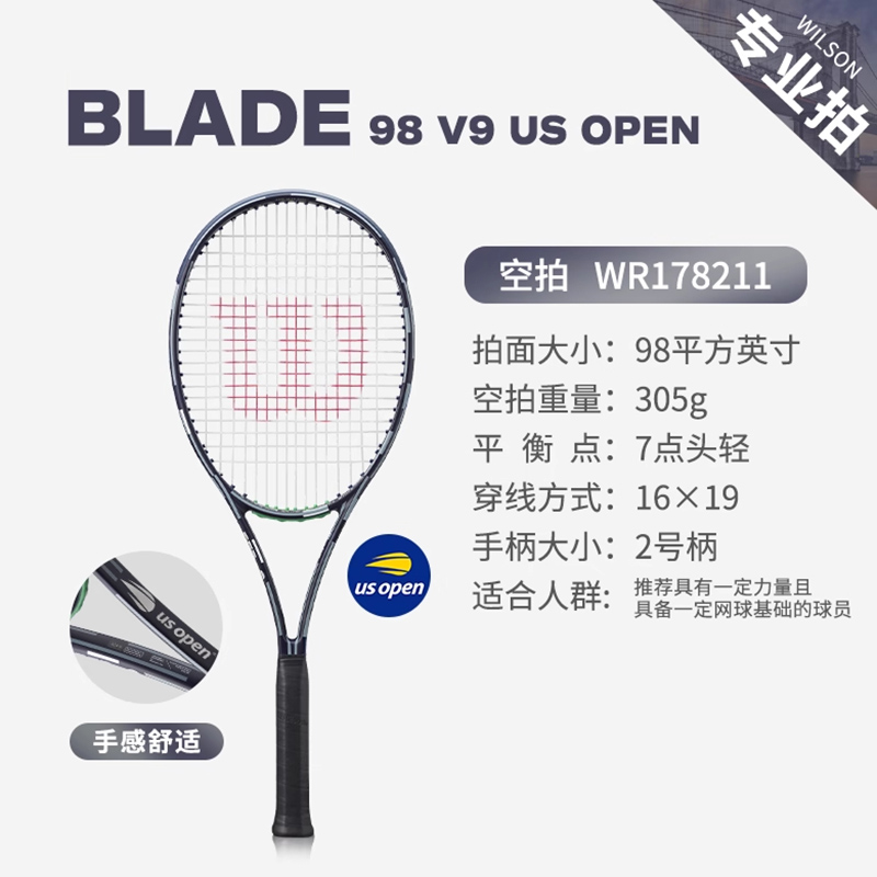 Wilson威尔胜网球拍 25美网限定新配色BLADE 98 V9 US OPEN 专业网球拍 98/305 WR178211
