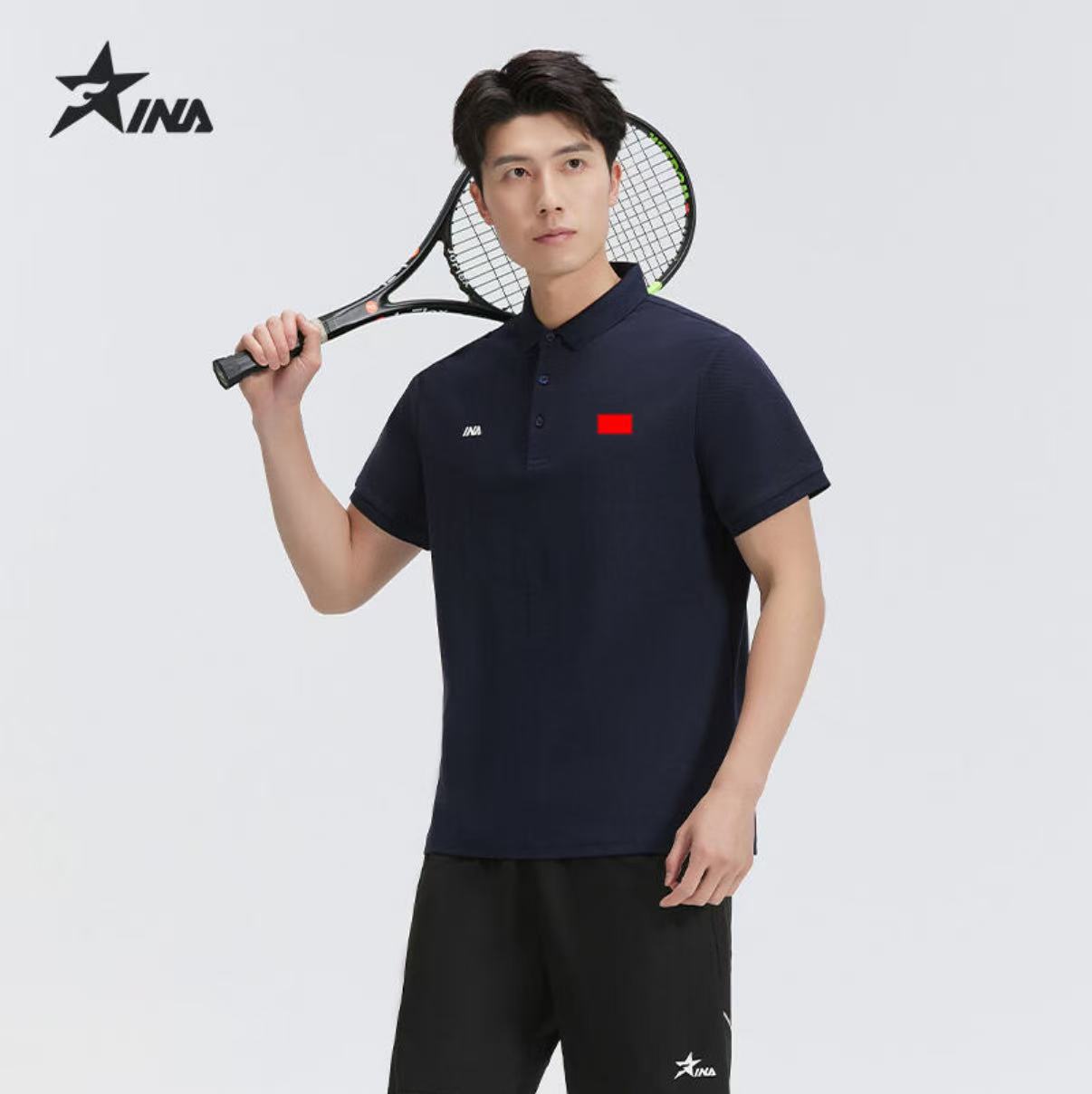 茵浪polo衫男士冰丝短袖 新款透气纯色款国旗polo衫t恤 IN-6529藏青色
