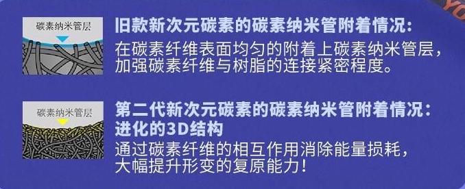 提升拍框刚性与回弹效率。高速状态下有柔软的击球感大幅度形变后能快速还原。