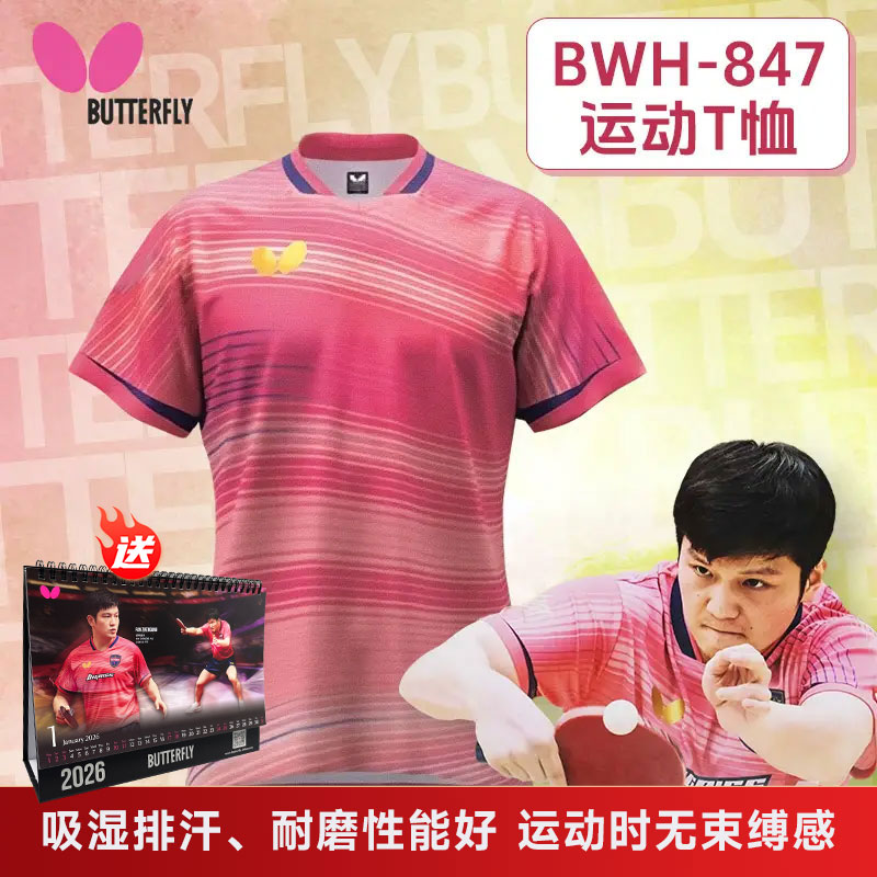 2025十大热销乒乓球服排行榜TOP2:蝴蝶 BWH-847-18 运动T恤 粉色