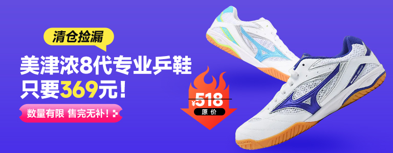 美津浓乒乓球鞋清仓盛宴开启!不止明星款,多款专业球鞋同步放 “价”,性价比直接拉满!作为国手挚爱同款,樊振东同款美津浓 8 代乒乓球鞋必须重点锁定!原价 518 元,现在直降 149 元,仅需 369 元就能入手专业级战靴!清仓库存有限,热门款式、热门尺码随时可能断货,别犹豫,抓紧入手!