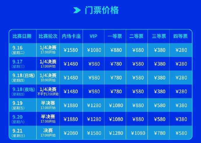 八强队伍将于9月16日-21日