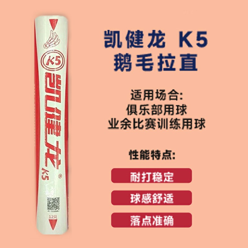 凯健龙 羽毛球 K5 鹅毛拉直 俱乐部用球 业余比赛用球 训练用球 12只/筒
