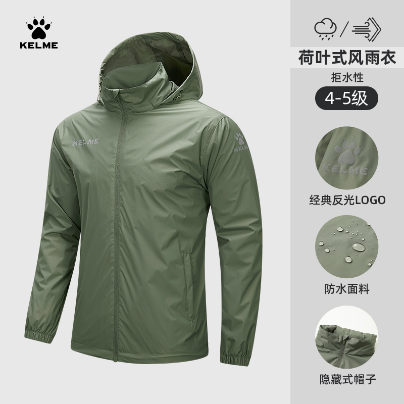 KELME卡尔美运动风衣 男春风雨足球防泼水跑步户外训练外套 9461WT1119军绿色