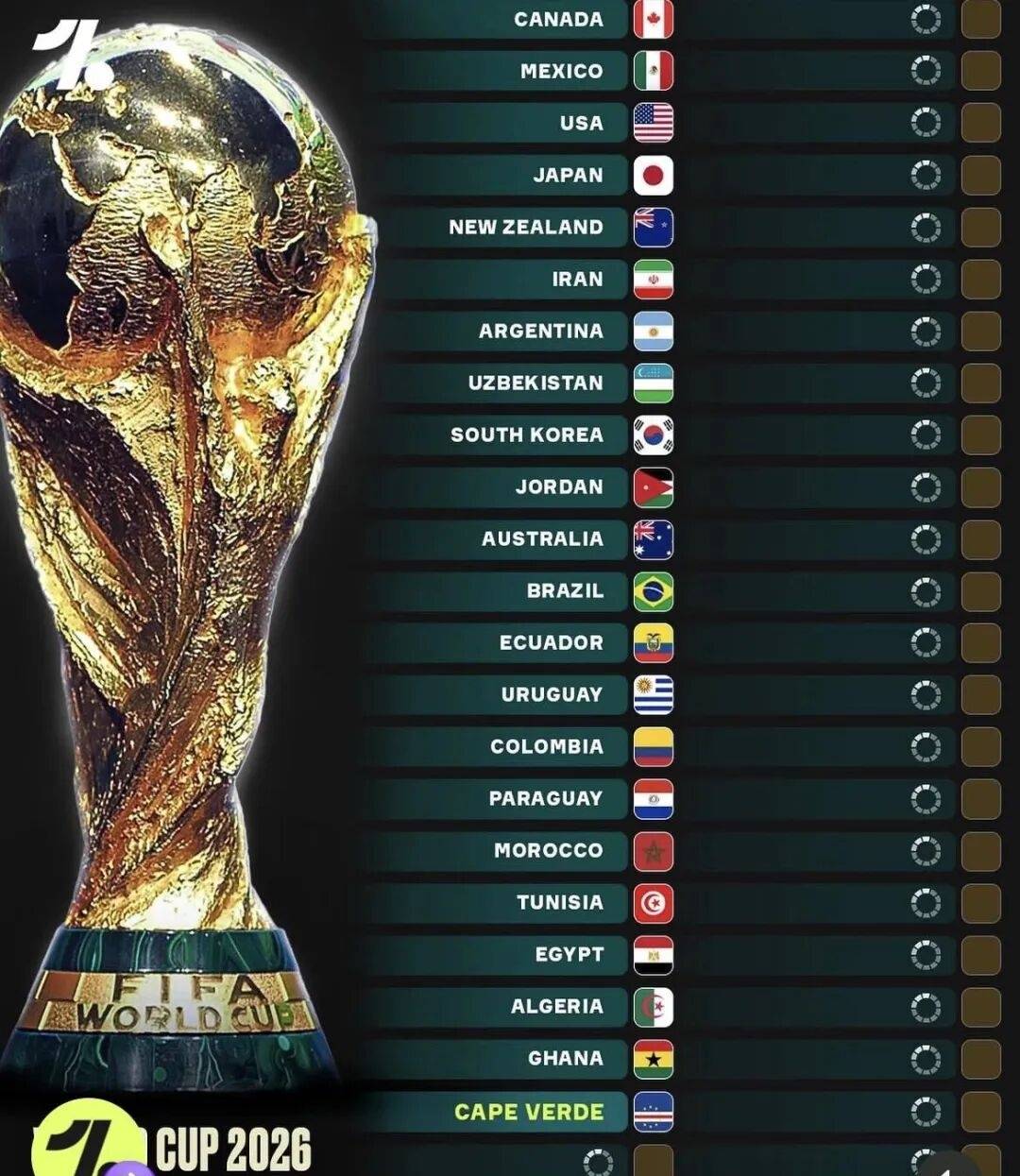 优个运动小编为您带来最新入围名单!!2026世界杯48强出炉22席: