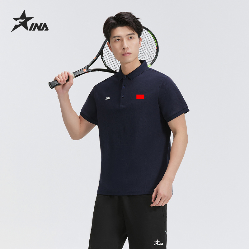 茵浪polo衫男士冰丝短袖 新款透气纯色款国旗polo衫t恤 IN-6529黑色
