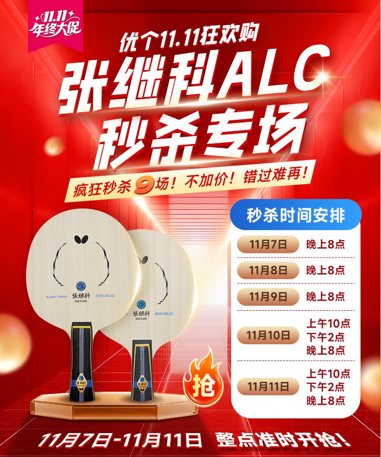 蝴蝶张继科ALC(不加价!) 5天9场火爆登场!