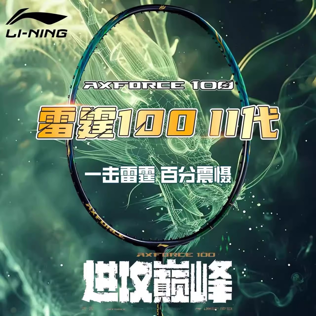 LI-NING 李宁 雷霆100二代 羽毛球拍 碳纤维专业比赛拍 减震高端进攻型单拍 雷霆100Ⅱ AYPV039-3 暴风绿