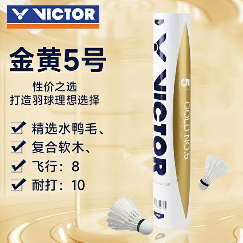 威克多VICTOR胜利 羽毛球 金黄5号 GD5 畅销款羽毛球 俱乐部训练鸭毛球 12只/筒