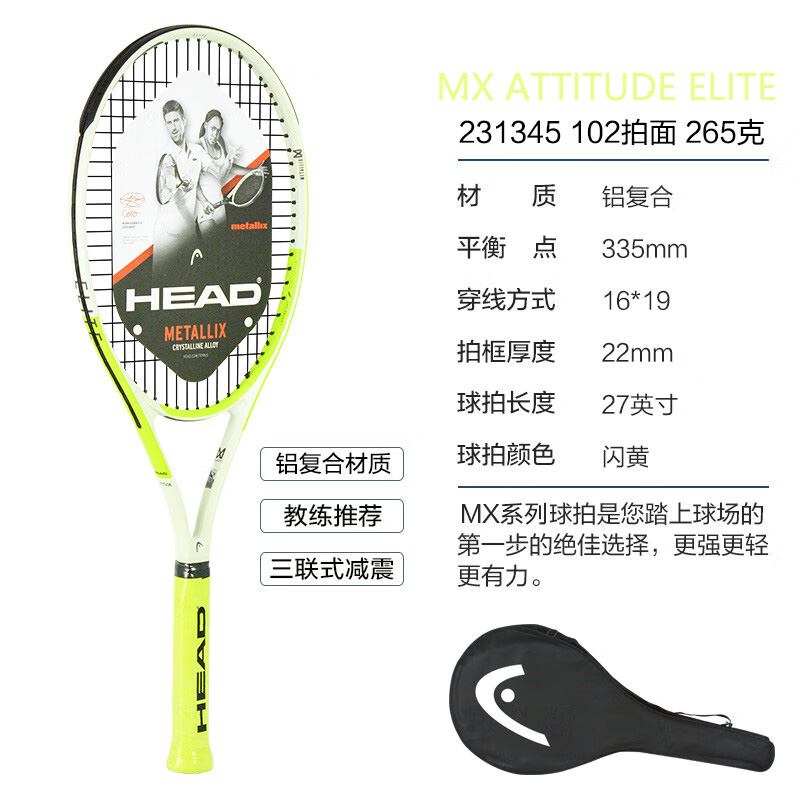 Head海德网球拍 碳素一体拍碳复合男女初学进阶拍MX系列成品拍穿线拍(2号柄) MX ATTITUDE ELITE 231345 102/265 黄色