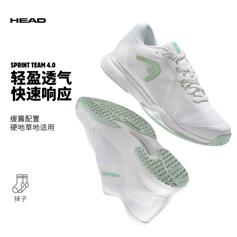 Head海德网球鞋 女子25新款Sprint Team 4.0耐磨透气专业运动鞋 274425 白/水绿