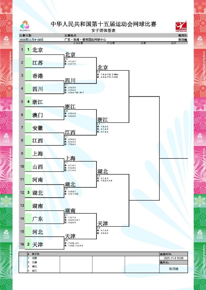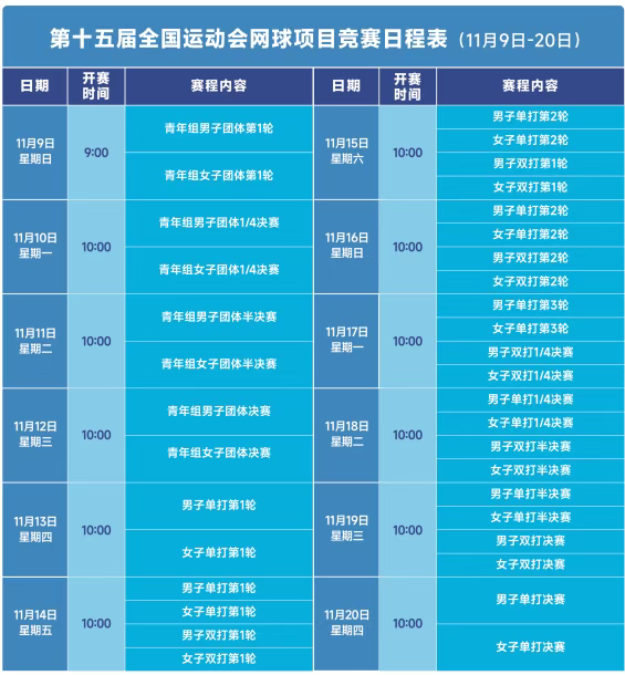 第十五届全国运动会网球项目竞赛日程表(11月9日-11月20日)