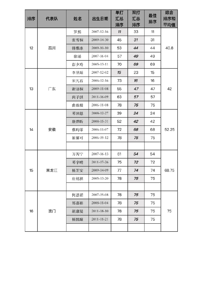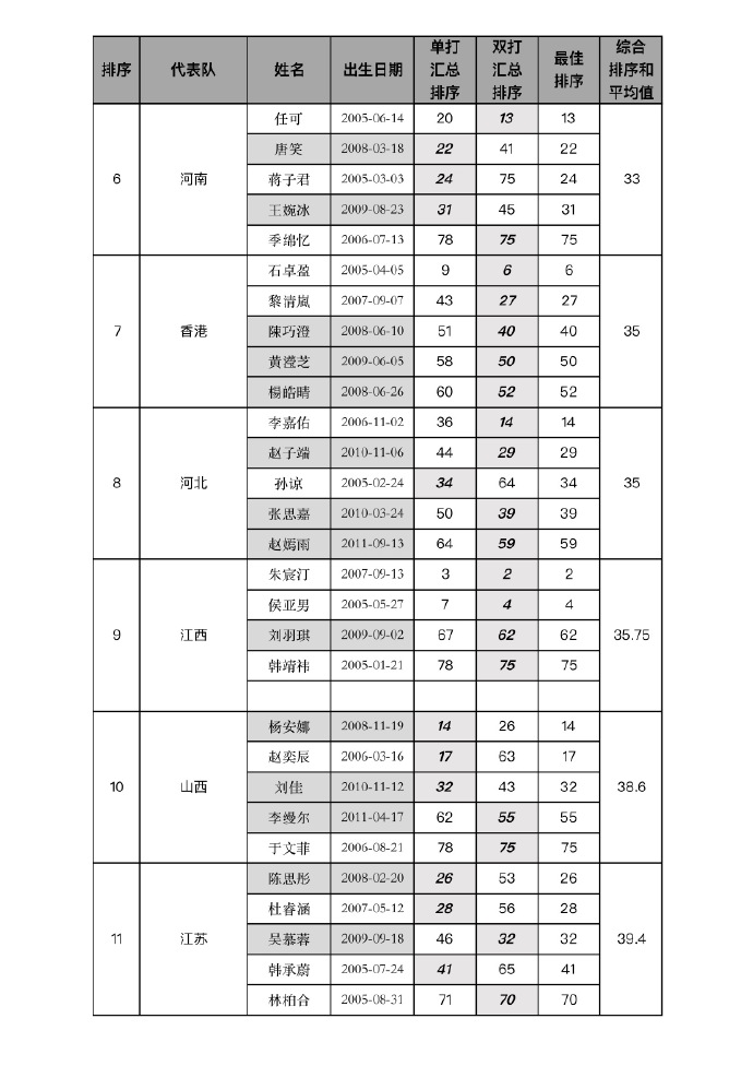 取消混双,增设青年组男/女团体两项,总项目数维持6项(男子单打、女子单打、男子双打、女子双打、男子团体、女子团体)。