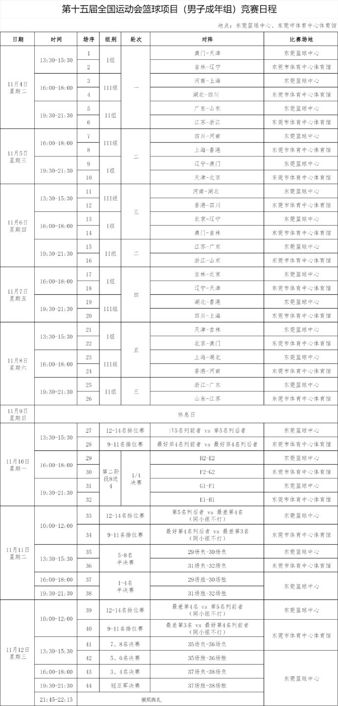 预赛与决赛:全运会篮球项目通常分为预赛和决赛两个阶段。预赛阶段,各参赛队伍通过分组循环赛或主客场双循环赛等方式进行比赛,以确定晋级决赛的名额和资格。决赛阶段则采用淘汰赛或分组循环赛结合淘汰赛的赛制,最终决出各项目的名次,比赛的强度和竞争程度在决赛阶段会更高,各支参赛队伍为了争夺金牌会展现出更高的竞技水平和拼搏精神。