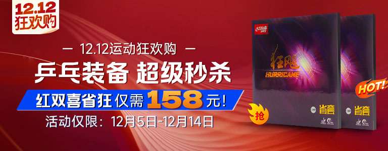 优个运动12.12狂欢购火热登场!超多爆款乒乓装备钜惠来袭!银河蓝铂力、银河U2、劲极7、省狂、斯帝卡clcr等等,还有买飞燕球鞋送袜子活动不容错过!你想要的优个运动12.12都有!价格超优惠,趁现在赶紧下手!