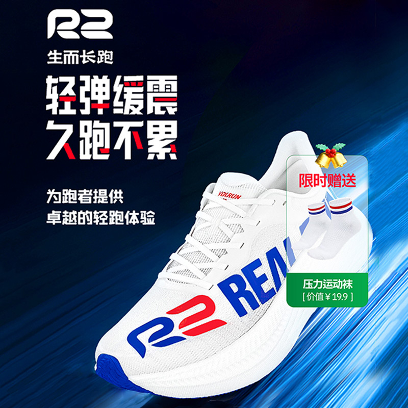 R2悠跑2.0是一款主打"轻弹缓震、久跑不累"的全能型马拉松跑鞋,专为长距离奔跑设计,兼具轻量化(40码仅200g)、高回弹和出色稳定性,适合4:30-8:00配速区间的跑者,无论是马拉松比赛、日常LSD长距离训练,还是健身跳绳等多种场景都能轻松驾驭。