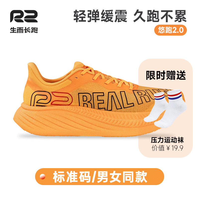 R2 悠跑2.0跑鞋 男女款马拉松跑鞋 秋季轻便缓震回弹透气跑步鞋 运动休闲鞋 旭日黄
