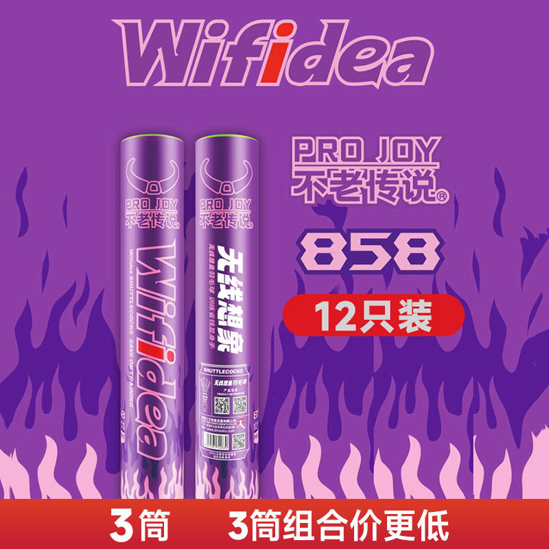 无线想象羽毛球 天然羽毛 复合软木球头 无线想象不老传说 858 AB级 8根毛片 12只/筒 3筒装