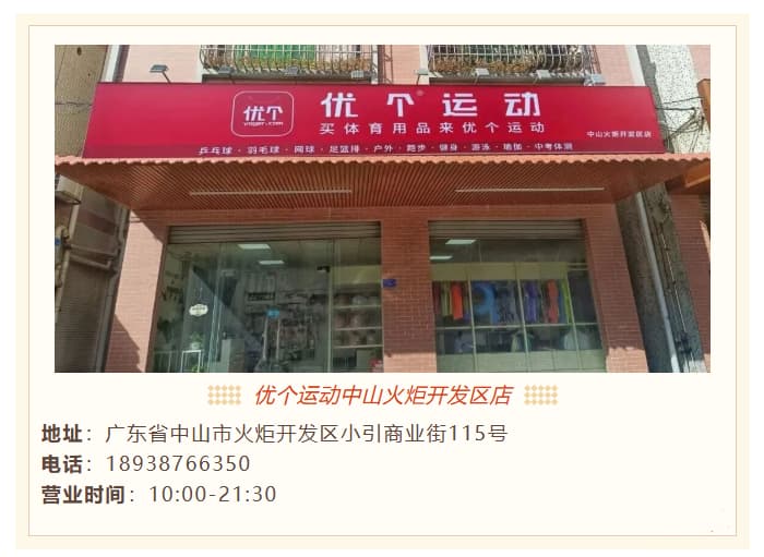 热烈祝贺优个运动加盟连锁再添新成员,优个运动中山火炬开发区店12月20日试营业启幕!