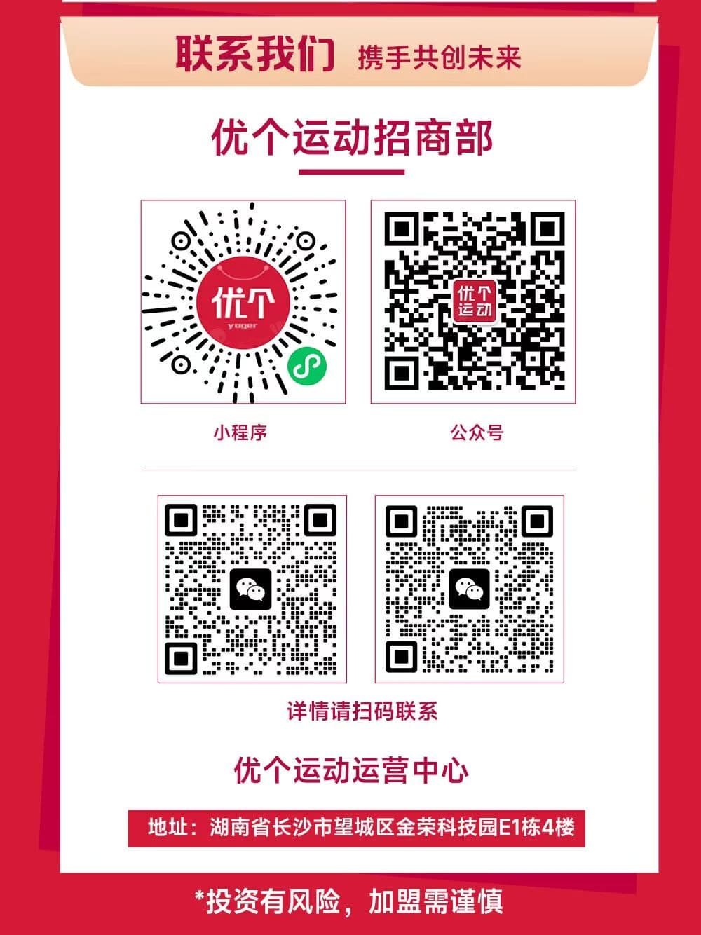 优个运动将持续深化布局华南、华中市场,寻找志同道合的体育产业伙伴,一起掘金万亿市场,共享发展红利!