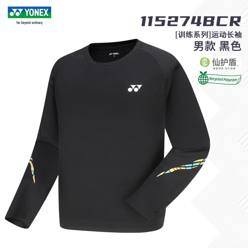 尤尼克斯YONEX 羽毛球服 男款 长袖速干T恤卫衣 训练系列运动服115274BCR