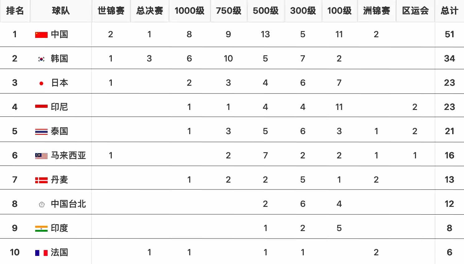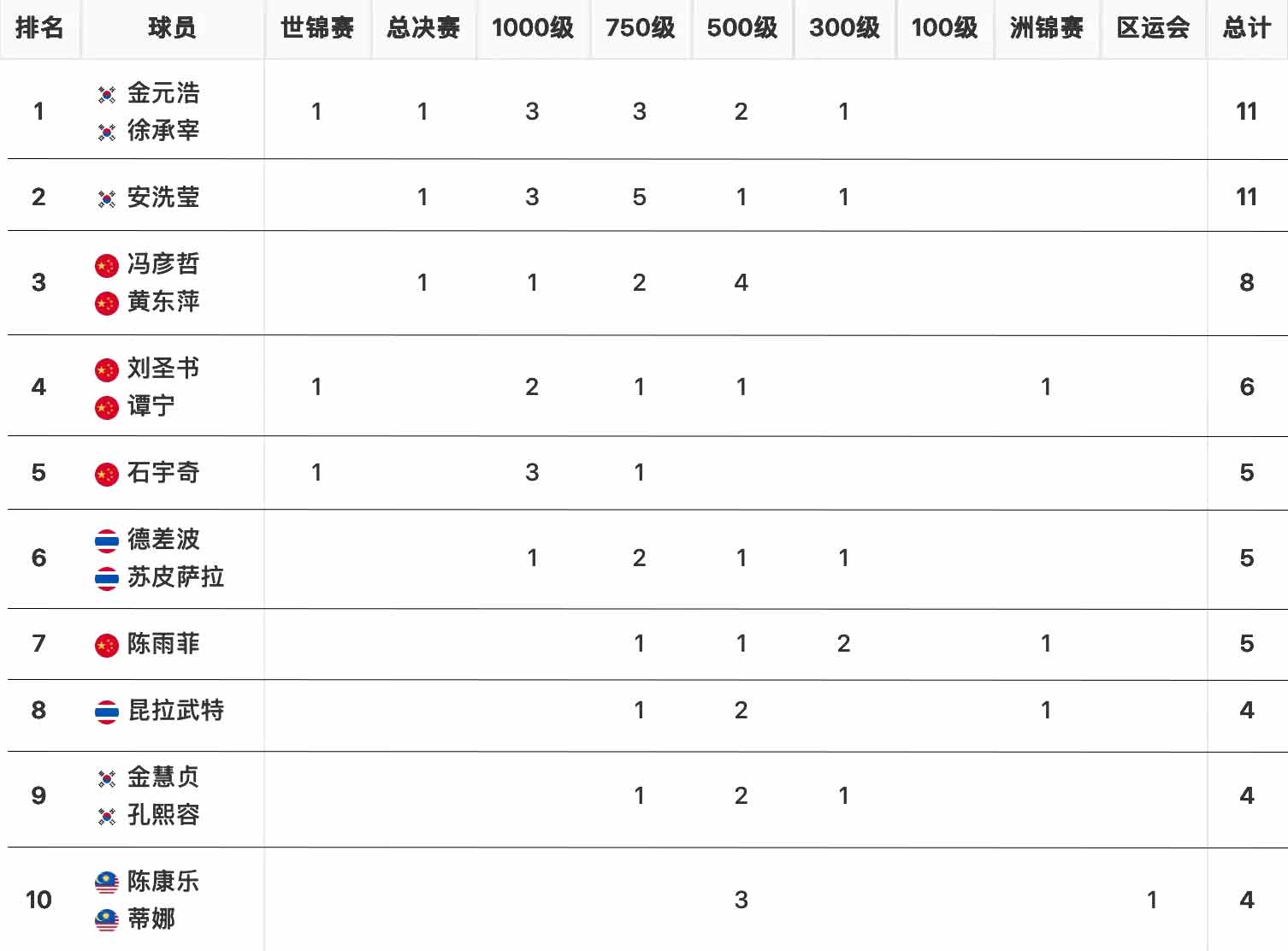 世界羽联2025赛季冠军榜-球员TOP10