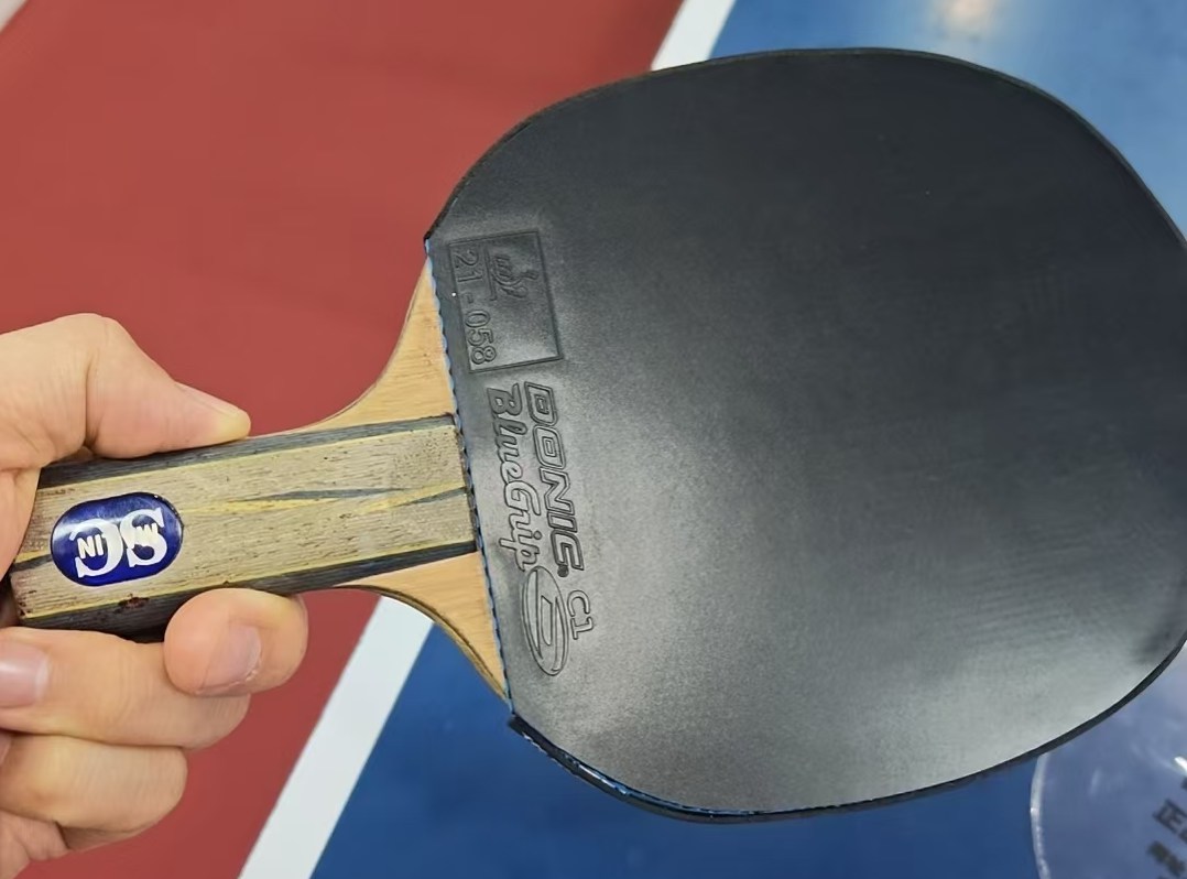 到手贴在正手,55度的C1完全打破了我对“C1=超硬难驾驭”的固有印象,上手适配速度远超预期。中式粘性胶面触感细腻,三天使用后粘性依旧在线,台内摆短、轻搓时控球精准,不会冒高,挑打时借力顺畅,小球处理有种国套的熟悉感,完全不像传统德套的风格。