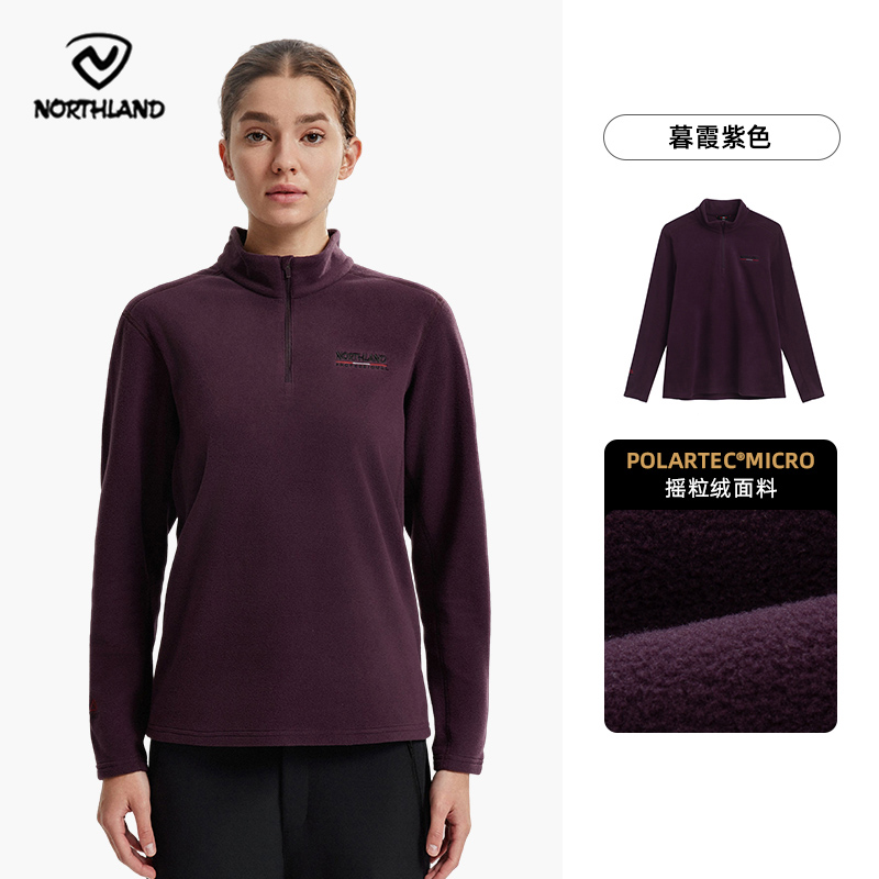 想搭内搭?诺诗兰摇粒绒立领衫安排上!POLARTEC 微米抓绒面料,软乎乎贴肤锁温,吸汗透气不闷汗,徒步登山当中间层刚好。原价 498 元,5.5 折仅 272 元,暮霞紫色温柔显白,男女款都适配。