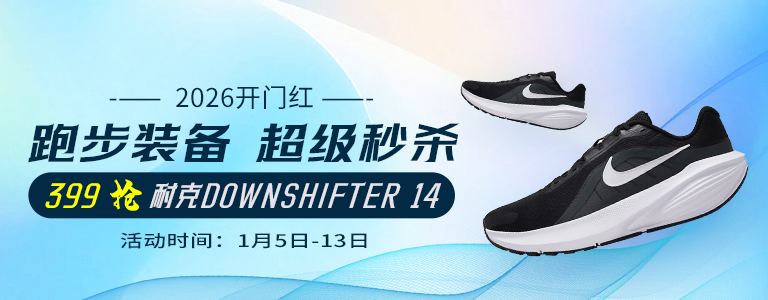 2026 开门红跑步党直接狂喜!跑步装备超级秒杀专场火力全开,爆款低价扎堆,首当其冲就是399 抢 NIKE DOWNSHIFTER 14—— 这波优惠不冲真的亏!买正品跑步装备,上优个运动吧!