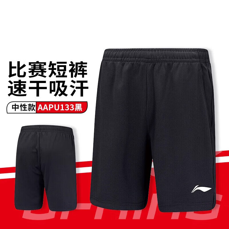 LI-NING 李宁 羽毛球服 比赛短裤 中性款 健身运动服 AAPU133-1 黑色