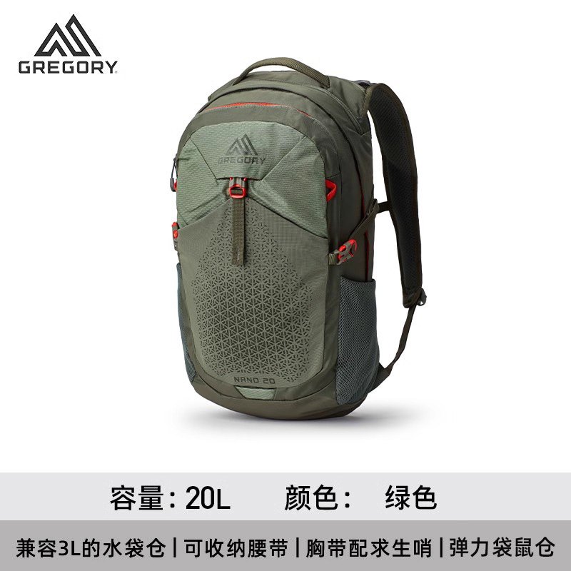 GREGORY格里高利 NANO蜂鸟20L 户外徒步登山包轻便旅行双肩背包 绿色