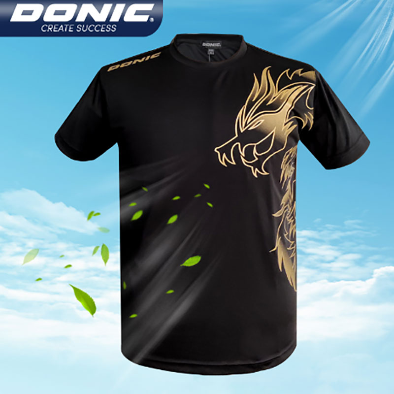 多尼克DONIC 乒乓运动短袖 男女龙形图案运动T恤 黑色 83218-278